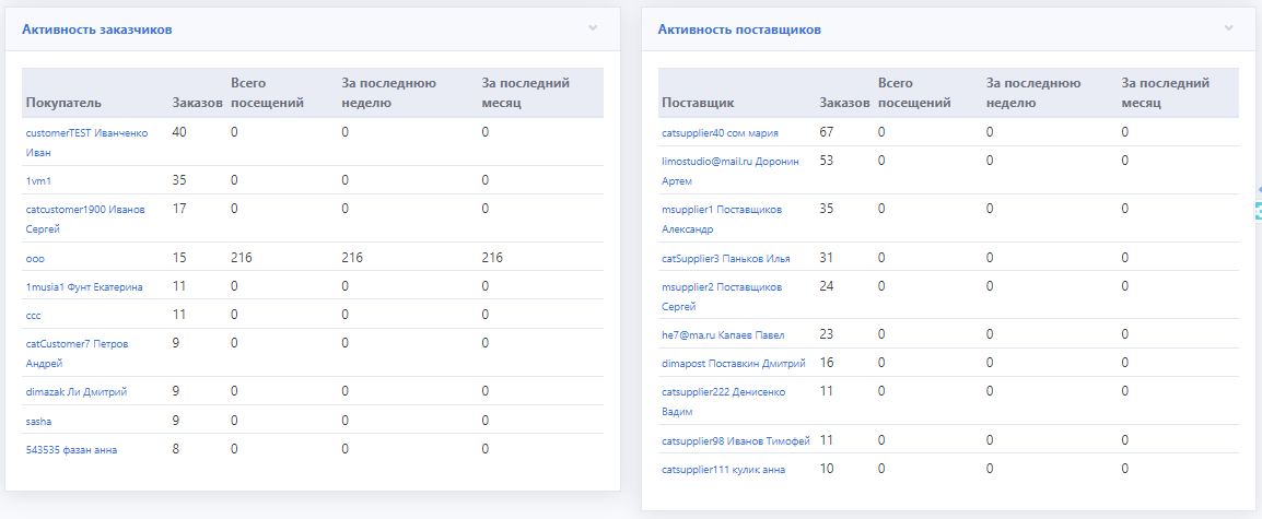 На странице Мой кабинет в кабинете Администратора можно посмотреть статистику по активности пользователей.