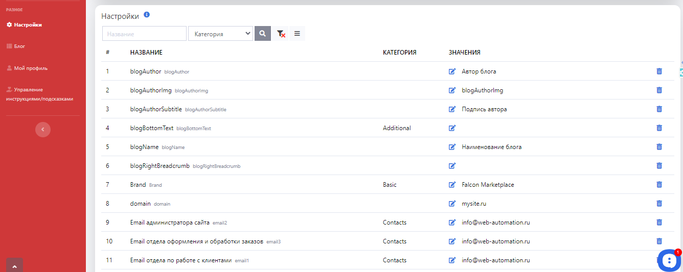В разделе Настройки можно выполнить настройку сайта. Там же расположены статичные настройки. Часть настроек идет в GetLayout, а часть системных настроек в web.config/