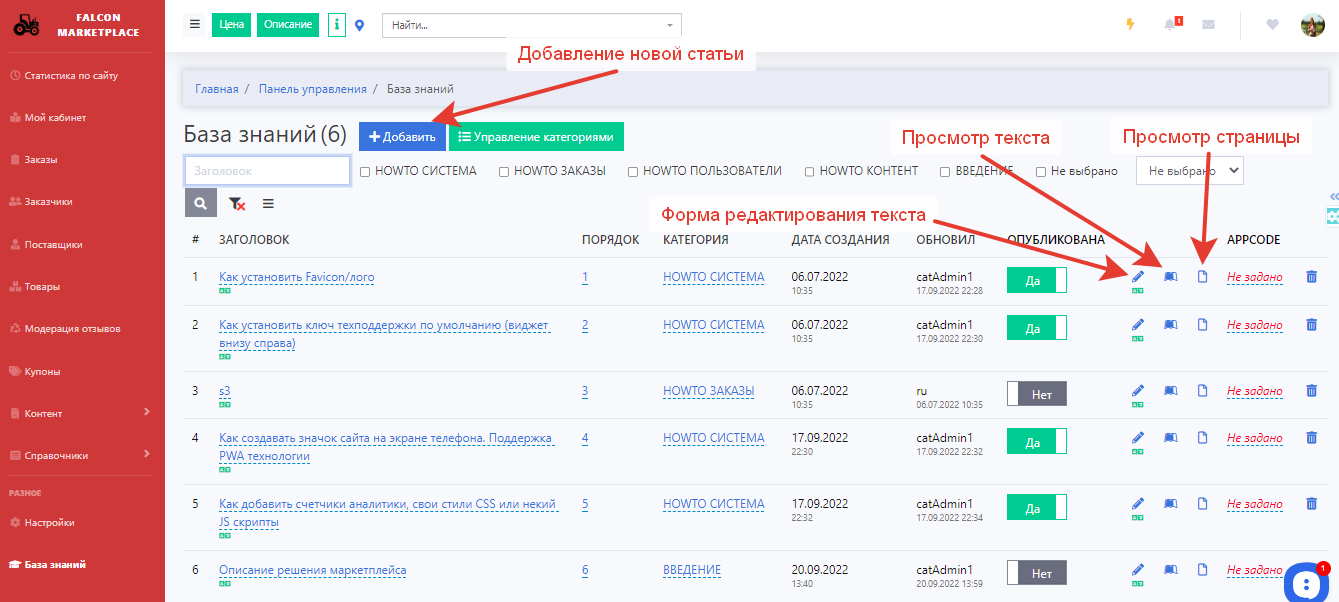 Это база знаний по основным возможностям решения Marketplace.Механизм в дальнейшем можно использовать как базу знаний либо для посетителей, либо для операторов на площадке.