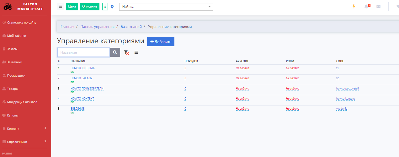 Для добавления/редактирования категорий Базы знаний нужно перейти на форму через Управление категориями.