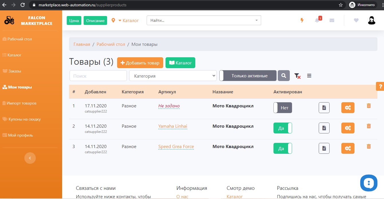 Вам будут приходить уведомления о всех изменениях статуса товара и сообщениях от Поставщика. По желанию Вы можете подключить сервис уведомлений в телеграм.